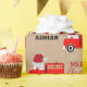 A cute illustration of a red fire truck wearing a Santa hat and decorated in Christmas lights on a kraft brown paper look background. The adorable red fire engine rushing off to put out a fire. Perfect gift for anyone and any age. An all time favourite emergency vehicle. Customise the name and make it your own.