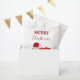 A cute illustration of a red fire truck wearing a Santa hat and decorated in Christmas lights. The adorable red fire engine rushing off to put out a fire. Perfect gift for anyone and any age. An all time favourite emergency vehicle.