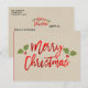 Christmas Red Foil Modern Script Holiday Kraft Postcard
