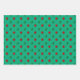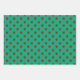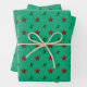 A festive wrapping paper trio sheet set for the Christmas holiday season featuring holiday red and forest green stars on a mid green background. Great for any occasion and makes an impressive gift wrap.