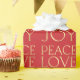 Elegant simple modern Peace Love Joy faux gold typography bright red Christmas holiday gift wrapping paper.