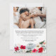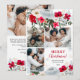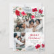 This Christmas photo greeting card features a vibrant, floral design with bold red, white, and green colours, perfectly framing a collage of family photos. The front of the card includes a festive "Merry Christmas!" message, while the back offers a heartfelt holiday greeting, making it ideal for sending warm wishes to loved ones. The floral accents add a touch of elegance, and the customisable text allows for a personal touch. With a mix of traditional and modern elements, this card is perfect for spreading holiday cheer. Add 4 of your favourite photos!