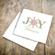 A simple snowflake with Joy script. A cute personalised custom template with a modern simple style. A colourful way to celebrate your holiday and Christmas get-togethers. This design features Christmas holiday red and green, cute whimsical joy typography, minimalist simple script typography, holiday Christmas paper napkin, festive red green snowflake pattern, Christmas cocktail party supplies, Christmas holiday party, colourful bright snowflakes, family and friends celebration, holiday barware home bar