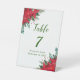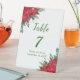 This festive Christmas wedding table number features red poinsettia flowers. Perfect for a Christmas wedding. The words can be changed to suit your own details or requirements