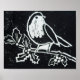 Christmas Red Robin with Holly in Black and White Poster