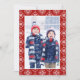 This merry Christmas photo card, a Christmas holiday, elegant red snowflake design with a one photo template, and a brush script typography, a simple minimalist, red and white, classic traditional, modern winter, cute whimsical, holiday photo card