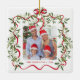 Christmas Red Wavy Frame Bow Greenery Photo Ceramic Ornament