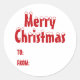 Christmas red white blank to from cute classic round sticker