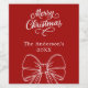 Christmas red white bow script wine label