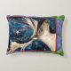 The cushion is small to medium sized. It can be washed. It is well constructed. The material used is pleasant and feels decent quality. It has a very slight plush feel which is good. It is well labelled and its care clearly stated. Theres nothing not to like about it. All in all a good item. The deduction of one star overall is due to long delays in delivery to the UK. It's not clear if this was due to Zazzle or somewhere else in the chain as I did not receive status updates of dispatch or progress. I cannot comment anymore on that other than to say that was our experience but it may not be the same for you. The printing was surprisingly close to what we were expecting. Its an art piece and on material so its hard to assess the precision of printing but it seems close to the original. The soft lines are reproductions of the original. The colour is a fair reflection of the painting. This was printed in the US and it looks like US quality. No issues.