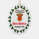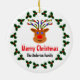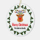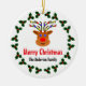 Image of a Christmas reindeer, surrounded by holly, on a white background.
