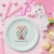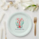 Christmas Reindeer Floral Mint Holiday Paper Plate