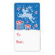 Cute illustrated Christmas gift labels featuring a illustration of a reindeer prancing over gifts on a snowy Christmas night. Customise with your own names. Illustration and design by Sarah Trett.