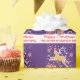 Get Christmas wrapped up with this unique cute prancing reindeer character with red nose in the white, purple and red. Christmas wrapping gift paper. Reads Happy Christmas, with love from. Customise with your family name or own greeting and message. Uniquely illustrated and designed by Sarah Trett.
