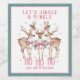 Christmas Reindeer Jingle & Mingle Festive Party Personalised Name Wine Labels Stickers features festive reindeer with pink bows and floral accents with the text "Let's Jingle & Mingle" in modern pink calligraphy script typography with your personalised name. Perfect personalised gift for Christmas and the holidays for family and friends. Designed by ©2024 Evco Holidays www.zazzle.com/store/evcoholidays