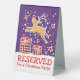 Help your customers or guests reserve Christmas tables in style with this add your own text or company name and Reserved instructional table card. Reindeer prancing over gifts art and design exclusively by Sarah Trett. Ideal for catering businesses that want to stop other customers sitting on the wrong tables at Christmas.