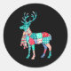 Christmas Reindeer Patchwork Reindeer Men Women Ki Classic Round Sticker