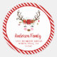 Modern Christmas Party Personalised Reindeer Candy Cane striped Party Envelope Return Address Seal Sticker with Red and White Stripes and a cute Reindeer with Floral Antlers and Ornaments. The family name and address can be update on these customised Christmas Party Paper Sticker. Please contact the designer for additional matching items.
