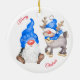 Christmas Reindeer With Gnome Ceramic Ornament.