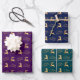 Christmas Reindeers on Purple, Navy and Teal Wrapping Paper Sheet