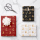 Christmas Reindeers on Red, Black and White Wrapping Paper Sheet