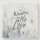 A soft watercolor background of trees in a foggy, gentle blue grey look, accents the word art of Wonders of His Love. A lone deer is standing in the foreground, with birds flying in the sky. Beautiful religious Christian Christmas gift that will stand out in its gentle simplicity. The text on the front is created to look like it is hand written with a watercolor brush giving it a loose and painterly look.