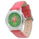 This awesome watch features a cute Christmas Robin character with a bright red breast, brown body and beady black eyes. It has its yellow beak wide open as it sings a Christmas carol. Its wings are outstretched as it joyously waits for Christmas.