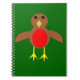 This awesome notebook features a cute Christmas Robin character with a bright red breast, brown body and beady black eyes. It has its yellow beak wide open as it sings a Christmas carol. Its wings are outstretched as it joyously waits for Christmas.