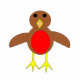 This photo sculpture features a cute Christmas Robin character with a bright red breast, brown body and beady black eyes. It has its yellow beak wide open as it sings a Christmas carol. Its wings are outstretched as it joyously waits for Christmas.