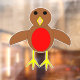 This awesome shaped window cling features a cute Christmas Robin character with a bright red breast, brown body and beady black eyes. It has its yellow beak wide open as it sings a Christmas carol. Its wings are outstretched as it joyously waits for Christmas.