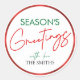 Complete your Christmas gifts and envelopes this year with a personalised Christmas label. This Season's Greetings round sticker includes a modern red and green holiday design with stylish script font and faux red foil effect.