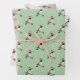 Cute wrapping paper featuring a ruby-throated hummingbird pattern on a green, brown and cream background.