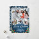 Christmas Rustic Blue Wood 4 PHOTO Greeting Holiday Card.