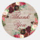 Christmas Rustic Boho Floral Burgundy Thank You Classic Round Sticker