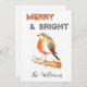 Merry and bright Christmas card. Robin watercolor painting by Monika Howarth. Robin art, Christmas gift, Christmas art, wall art, woodland animal, bird art, bird painting, bird print, robin card, robin painting, Robin print; woodland bird. Christmassy, Christmas, season, festive art, bird lover, red bird, trendy. picture, for mum.