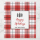 Fun and festive, these Christmas Rustic Country Red White & Black Flannel Plaid Pattern wine labels are the perfect way to adding some extra holiday flair to your holiday party or holiday gifts. Feature black trees with red text "Happy Holidays" on a red, black, and white tartan gingham background. Black typography with "The Andersons" changeable to fit your name.