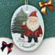 Hand drawn and digitally painted in watercolors with faux glitter snow, this adorable kids Merry Christmas ornament features a Santa Claus gnome and Christmas tree with personalised name. The perfect keepsake for grandkids, nieces and nephews. Add their name to this cute festive ornament for an extra special tree decoration this year!