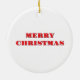 This ceramic Christmas ornament is shown with a festive Santa art print.