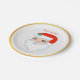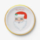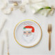 Beautiful Christmas Santa Claus and golden frame on white paper plate. Text Merry Christmas can be personalised.