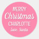 Christmas Santa Custom Name Typography Pink Classic Round Sticker