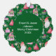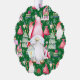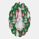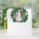 Christmas Santa Gnome & Green Pattern Name & Date Paper Ornament Card. Features a big Santa Gnome over a coloured background pattern with gnomes, presents, holly, candy canes, Christmas trees, and Santa's bag. The back of the ornament has your names and Christmas year. Personalise this with your quote or message. Edit it for more customisation.