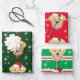 Wrap your gifts with cute golden retriever dogs dressed in Santa hats! Perfect for dog lovers or anyone who has this breed as a pet. The set comes in green / red /red-white-green stripe.