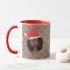 Christmas Santa Hat, Black Woman, Red Dots, Brown Mug