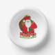 Modern graphic bright red Christmas santa aka father Christmas with sack full of gifts on a fun festive bowl. Original design by Sarah Trett for www.mylittleeden.com