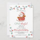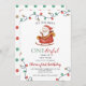 It's the most ONEderful time of the year! Santa first birthday party invitation with watercolor santa snd sleigh and red polka dot back.