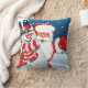 Holiday throw pillow shown with a cute santa and snowman print. Customise this pillow or buy as is.