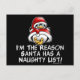 I'm the reason Santa has a naughty list. Funny Christmas slogan / quote / saying with a cute and silly penguin. With a black background that can be changed to any colours.