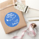 Show how much you believe in the magic of Christmas and Santa Claus with this Christmas family round sticker featuring the silhouette of Santa's sleigh in white with his reindeers, flying in a trail of stars.