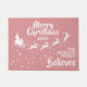 Show how much you believe in the magic of Christmas and Santa Claus with this Christmas doormat featuring the silhouette of Santa's sleigh in white with his reindeers, flying in a trail of stars.
