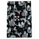 Scandinavian / Nordic-themed pattern featuring a grey fox on a black background. The fox has floral elements in red and black. The pattern is also decorated with red berries and white leaves. There's also a version for small, medium, and wine bags.